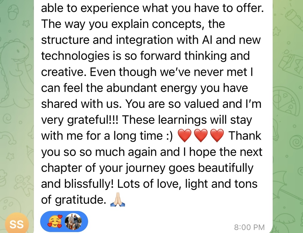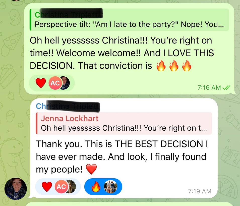 Group sharing & feedback inside our Leader’s Lounge Telegram thread